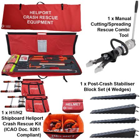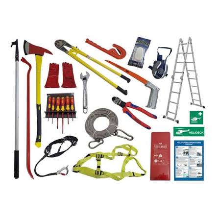 This compact yet comprehensive equipment box includes essential tools, medical supplies, fire suppression gear, and extraction equipment required for rapid response and rescue. Encased in a durable, weatherproof, and impact-resistant case, this kit is ideal for offshore platforms, helipads, airports, and remote field operations.